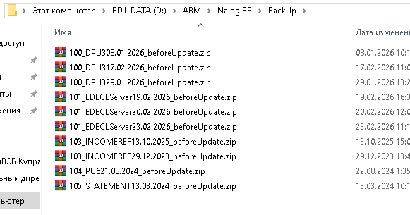 Резервные копии находятся в папке "NalogiRB\BackUp"