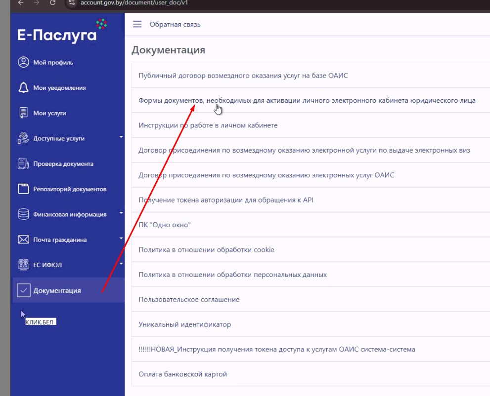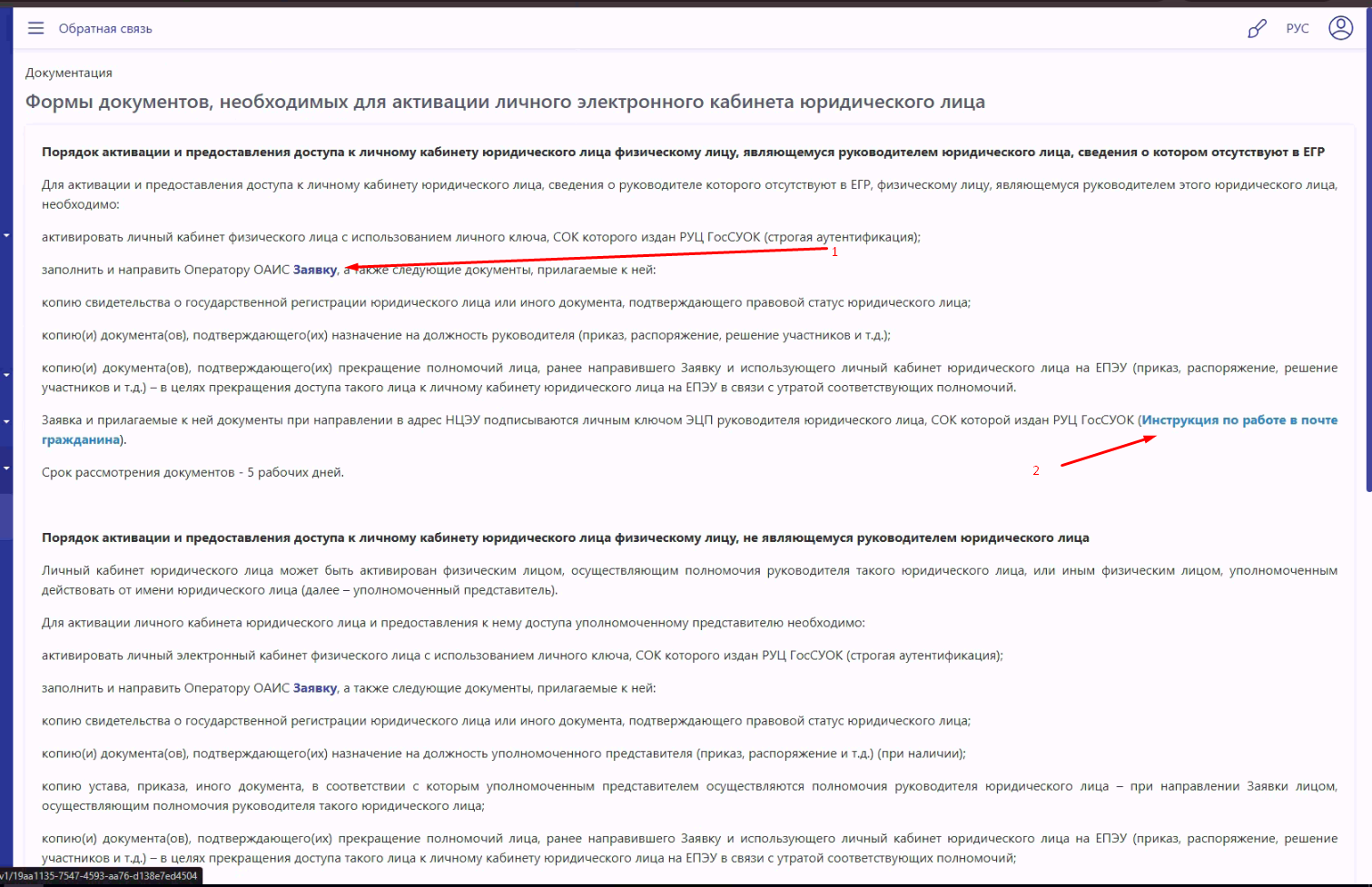 2) Документация - Формы документов необходимых для активации личного кабинета юр лица